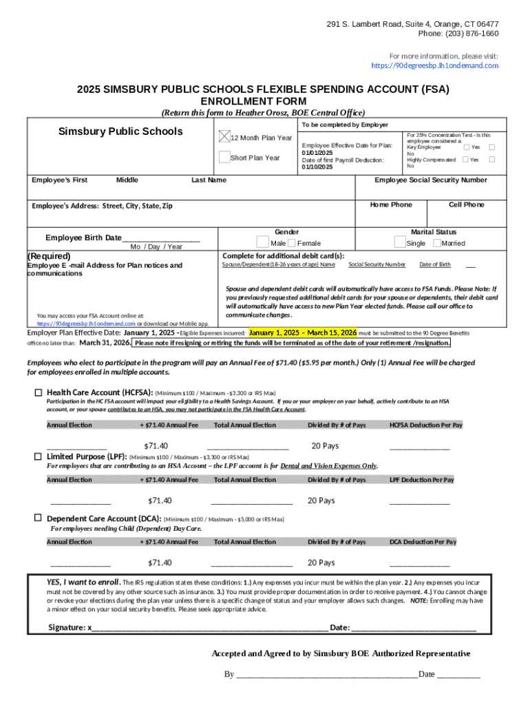 2025 Simsbury Public Schools Flexible Spending Account Enrollment Doc