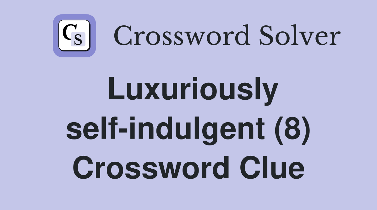 Luxuriously self indulgent (8) Crossword Clue Answers Crossword Solver