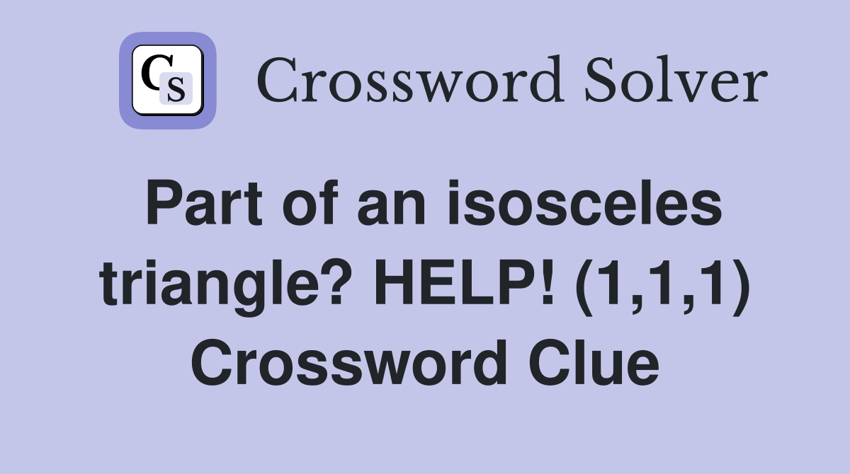 Part of an isosceles triangle? HELP (1 1 1) Crossword Clue Answers