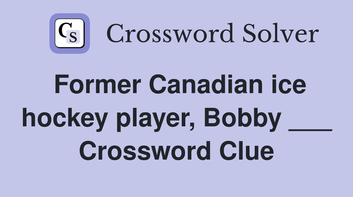 Former Canadian ice hockey player Bobby Crossword Clue Answers