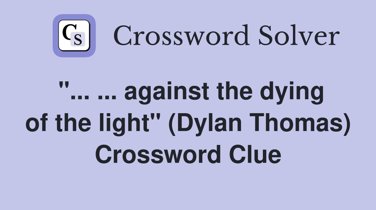 against the dying of the light quot (Dylan Thomas) Crossword Clue Answers