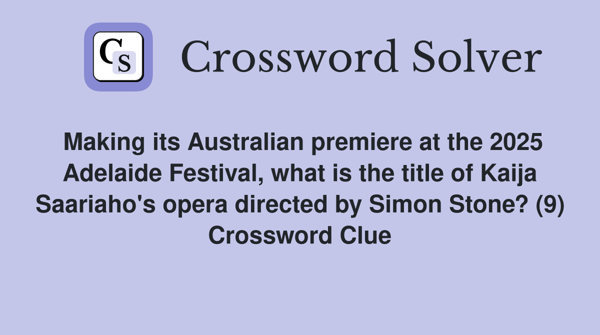 Making its Australian premiere at the 2025 Adelaide Festival what is