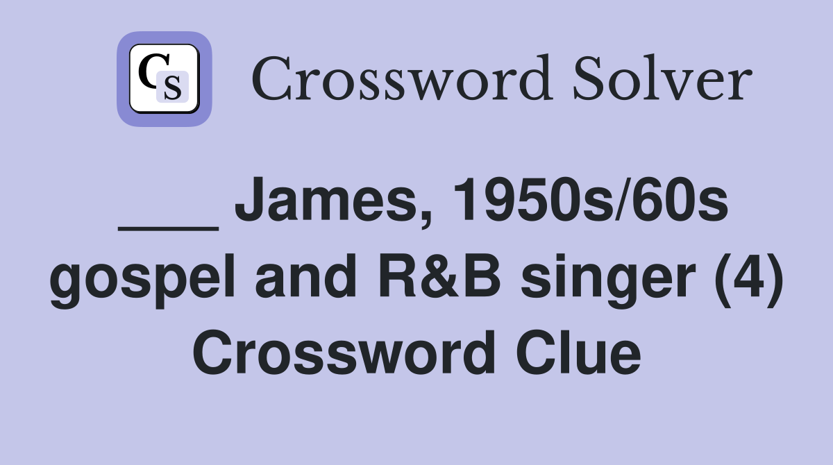 James 1950s/60s gospel and R B singer (4) Crossword Clue Answers