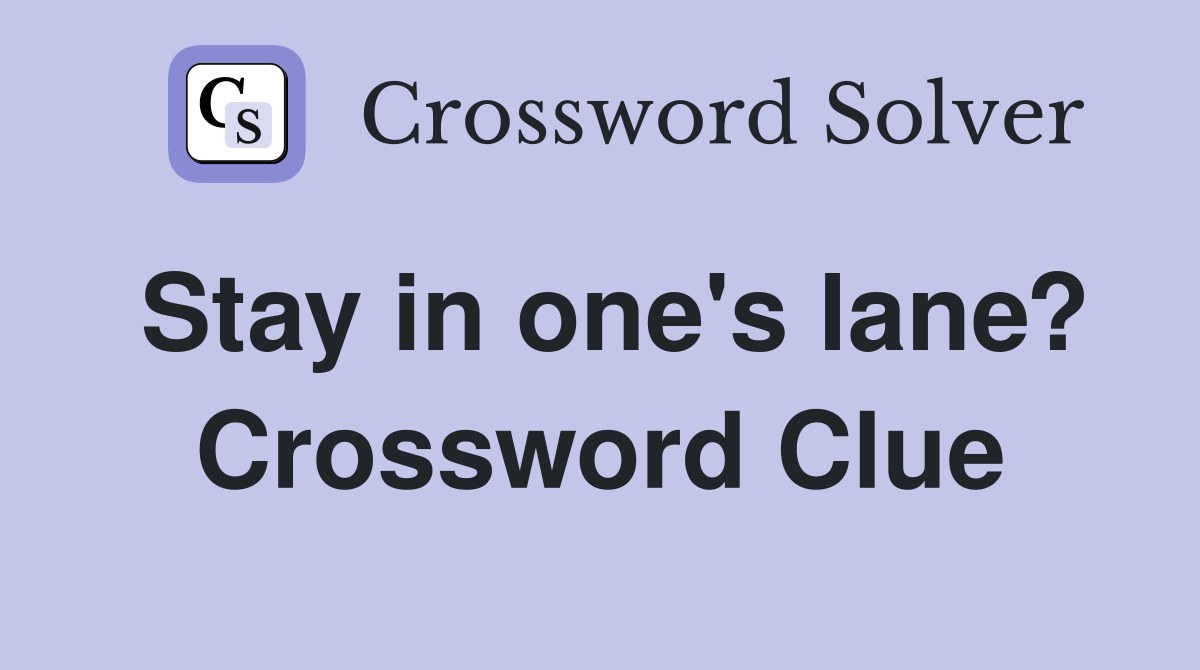Stay in one s lane? Crossword Clue Answers Crossword Solver