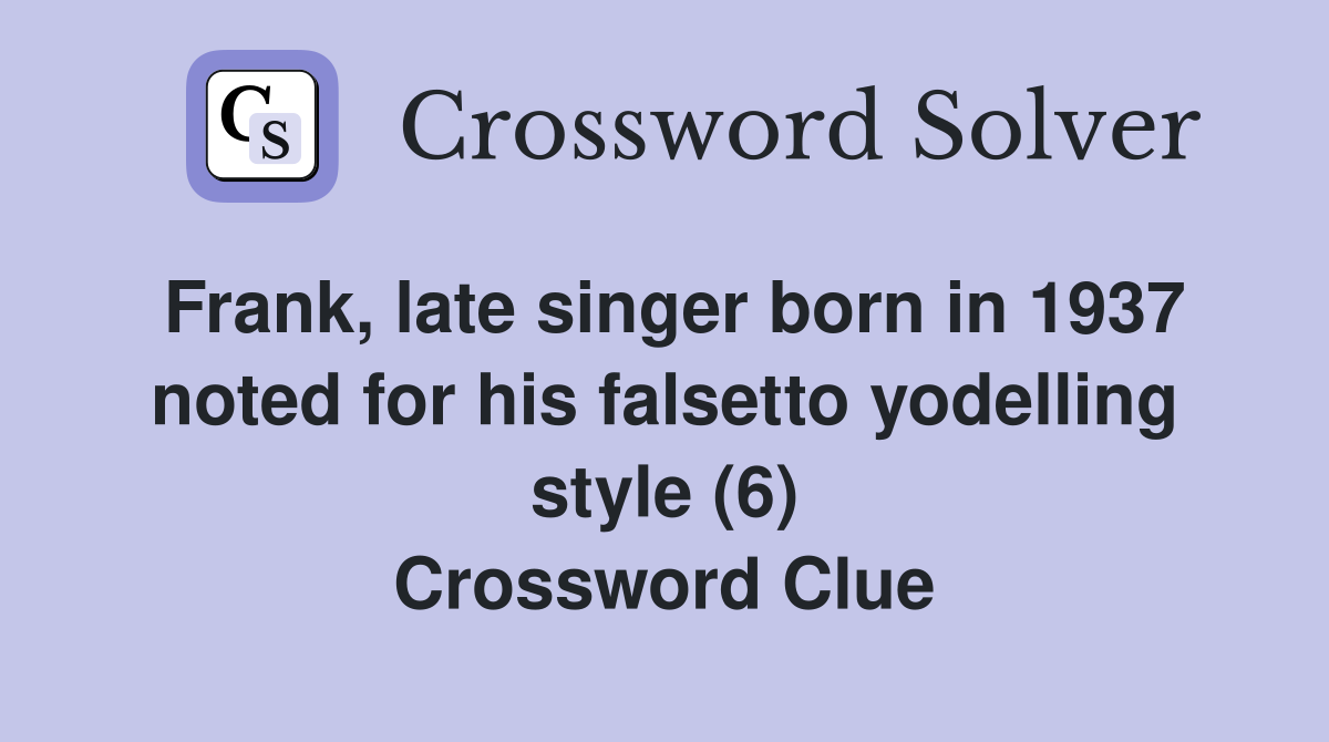 Frank late singer born in 1937 noted for his falsetto yodelling style