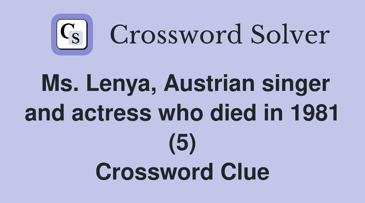 Ms Lenya Austrian singer and actress who died in 1981 (5) Crossword