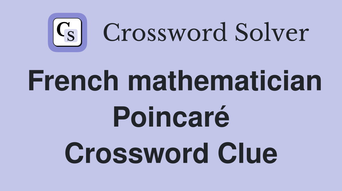 French mathematician Poincaré Crossword Clue Answers Crossword Solver