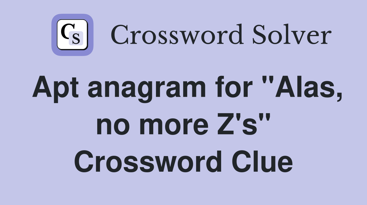 Apt anagram for quot Alas no more Z #39 s quot Crossword Clue Answers