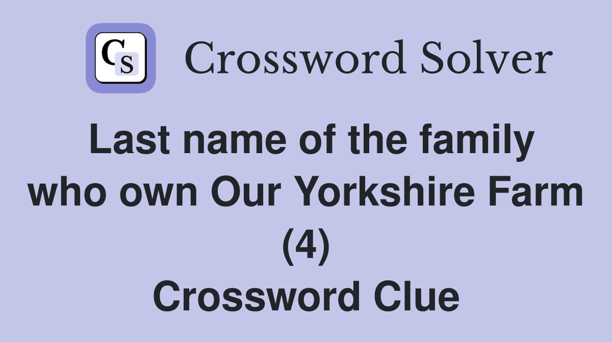 Last name of the family who own Our Yorkshire Farm (4) Crossword Clue