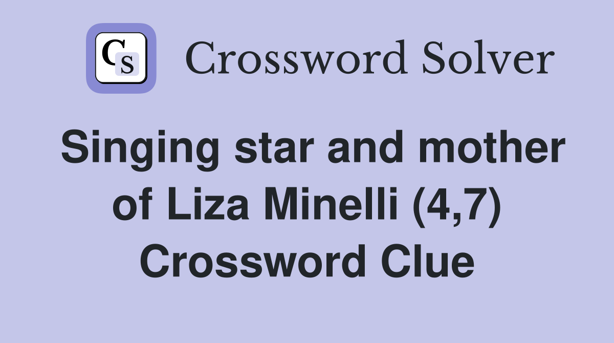 Singing star and mother of Liza Minelli (4 7) Crossword Clue Answers