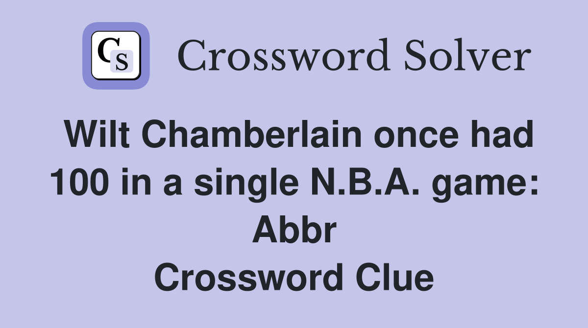 Wilt Chamberlain once had 100 in a single N B A game: Abbr NYT