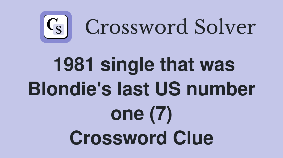 1981 single that was Blondie #39 s last US number one (7) Crossword Clue