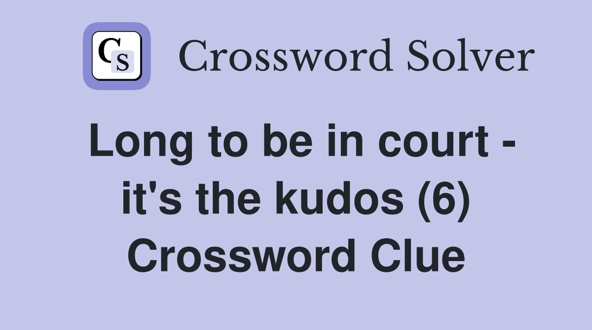 Long to be in court it #39 s the kudos (6) Crossword Clue Answers