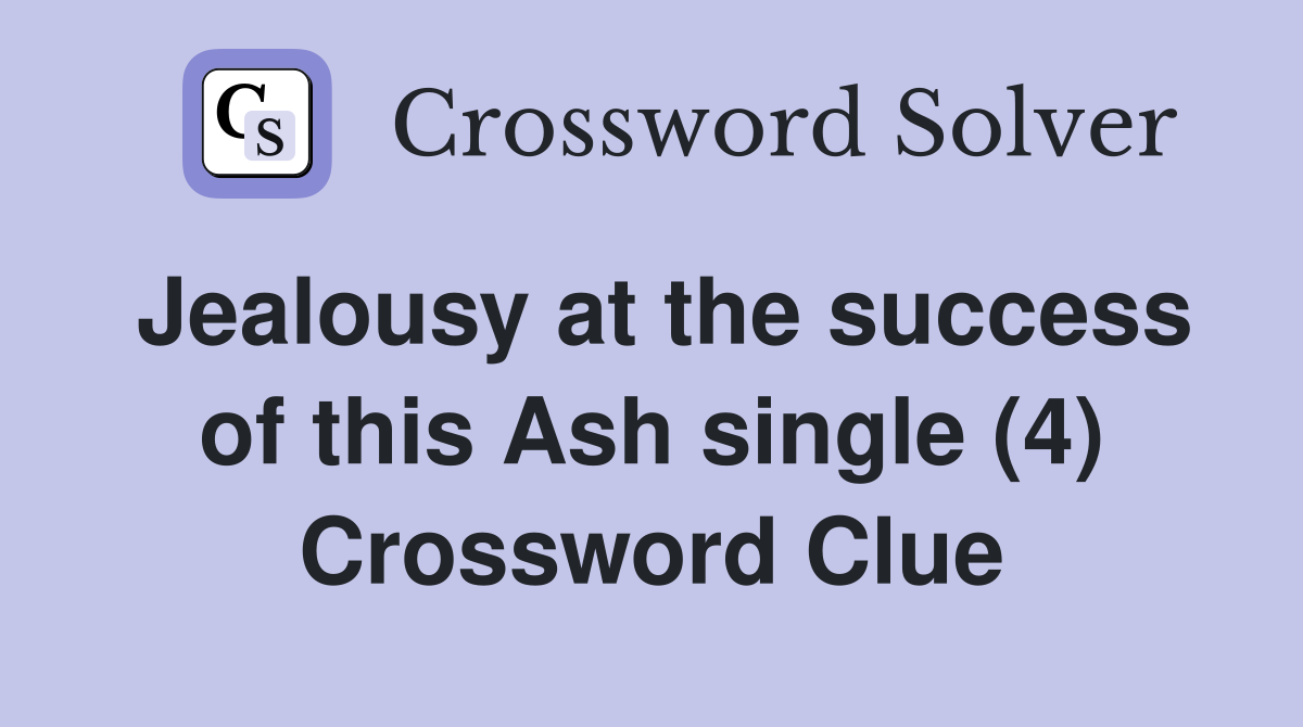 Jealousy at the success of this Ash single (4) Crossword Clue Answers