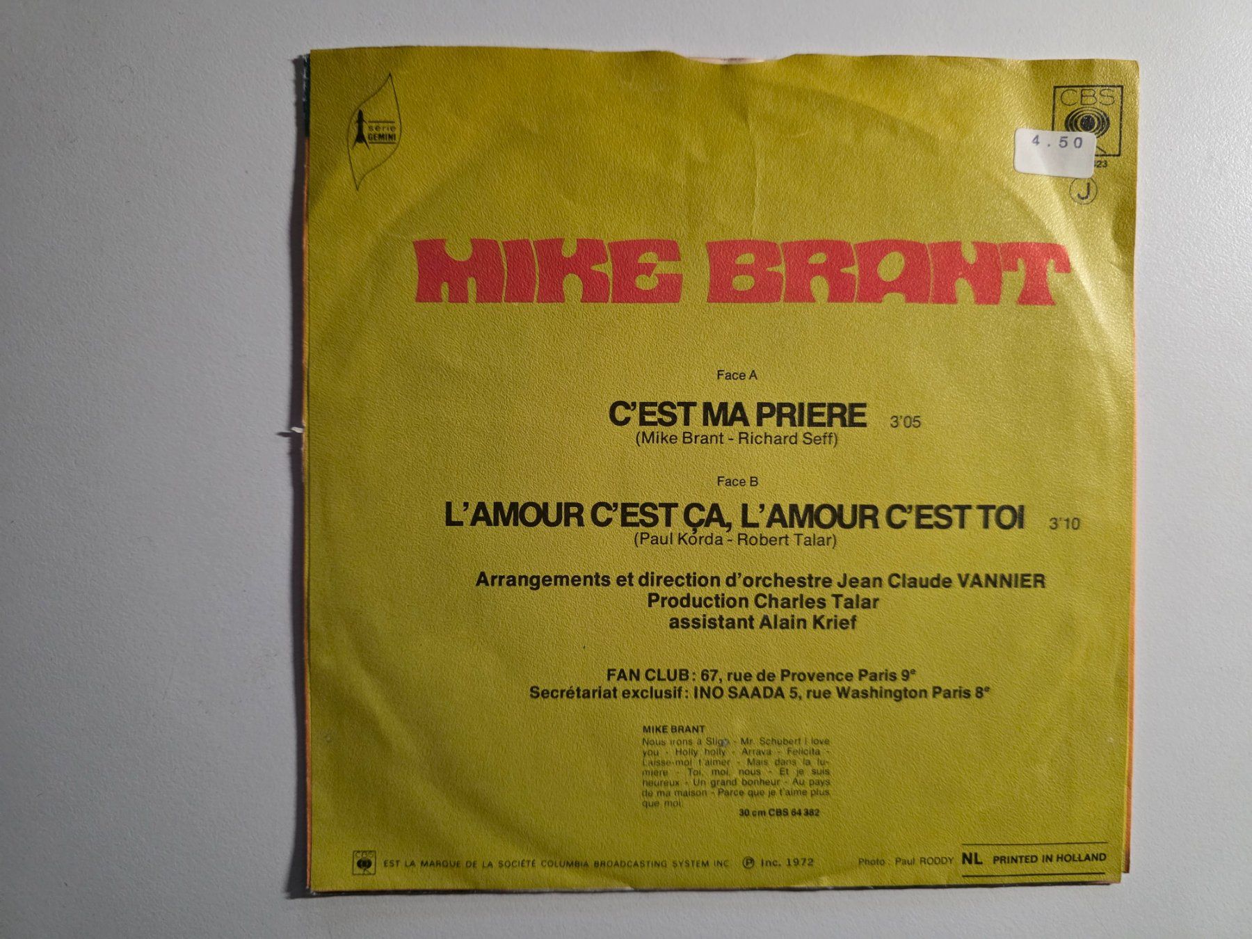 Single Vinyl Mike Brant c #39 est ma Priere (Gebraucht) in Walterswil