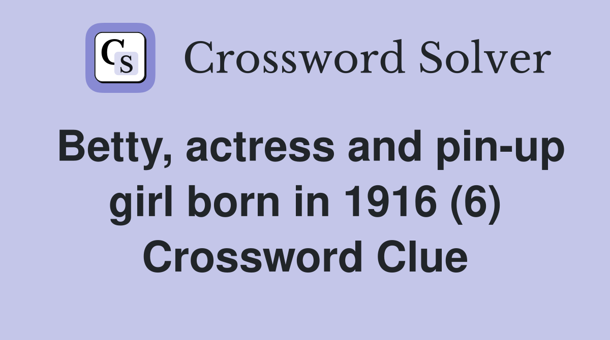 Betty actress and pin up girl born in 1916 (6) Crossword Clue