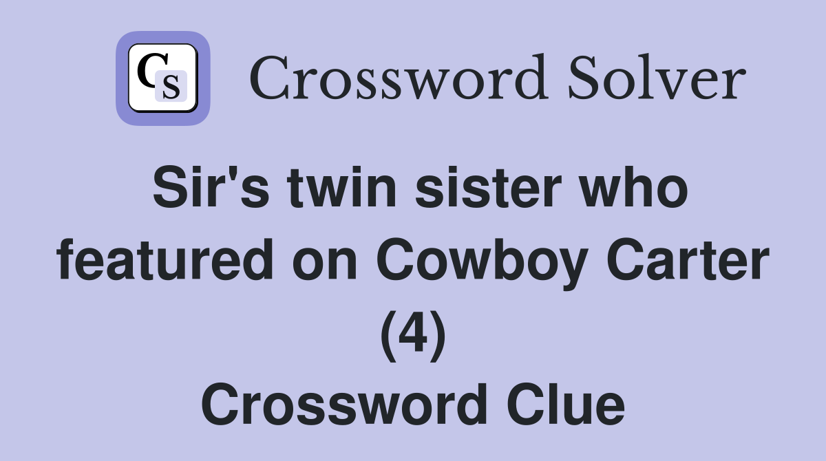 Sir s twin sister who featured on Cowboy Carter (4) Crossword Clue