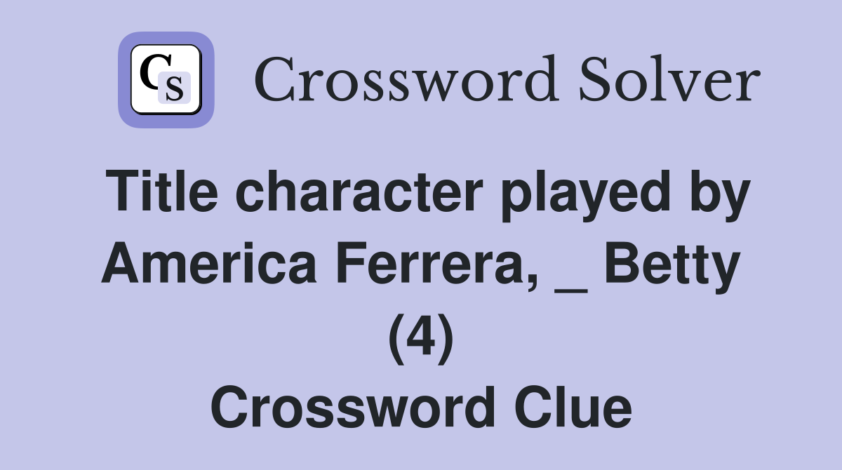Title character played by America Ferrera Betty (4) Crossword Clue