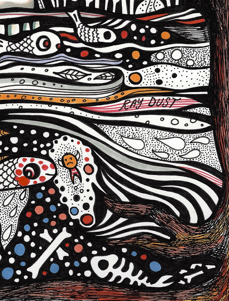 Sink or Swim Art 8 1/2x11 Skull Fish Bones Eyeballs Drawing