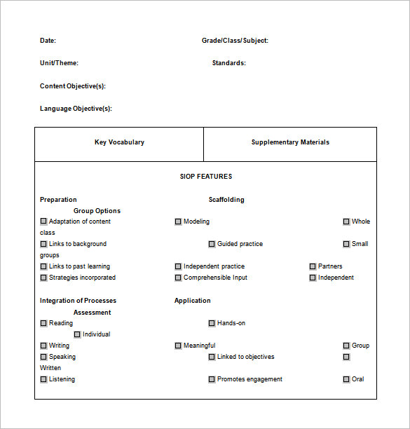 8 SIOP Lesson Plan Templates Download Free Documents in PDF Word