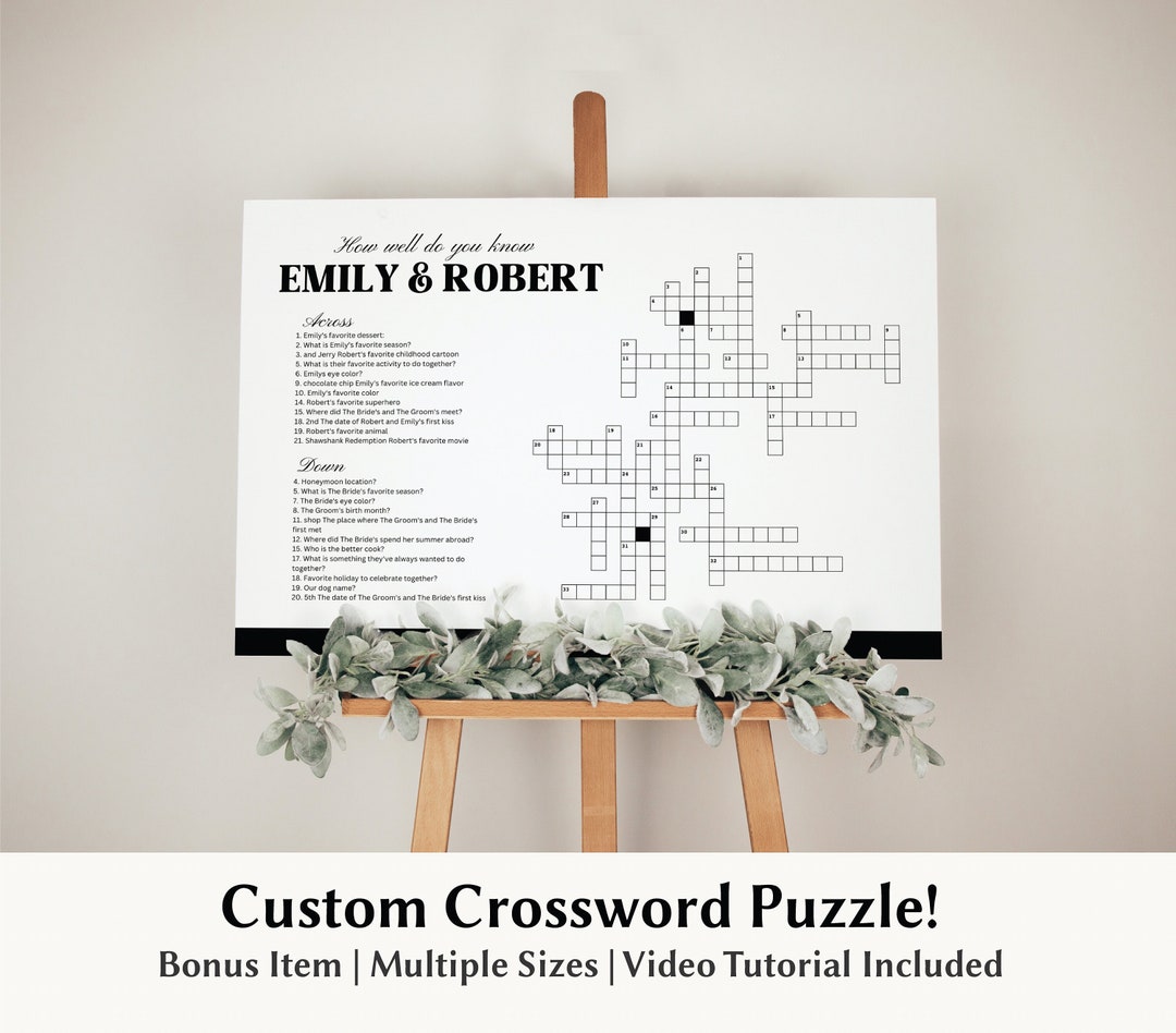 Custom Wedding Crossword Extra Large Minimalist Sip and Solve Etsy
