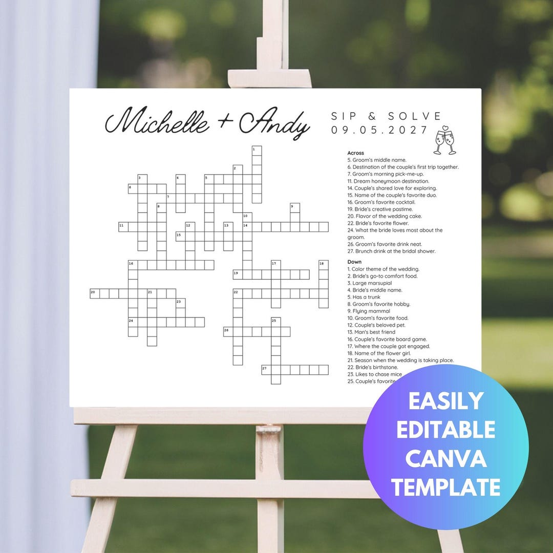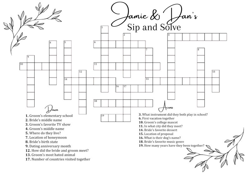 Custom Wedding Crossword Puzzle Large Sip and Solve Crossword Etsy