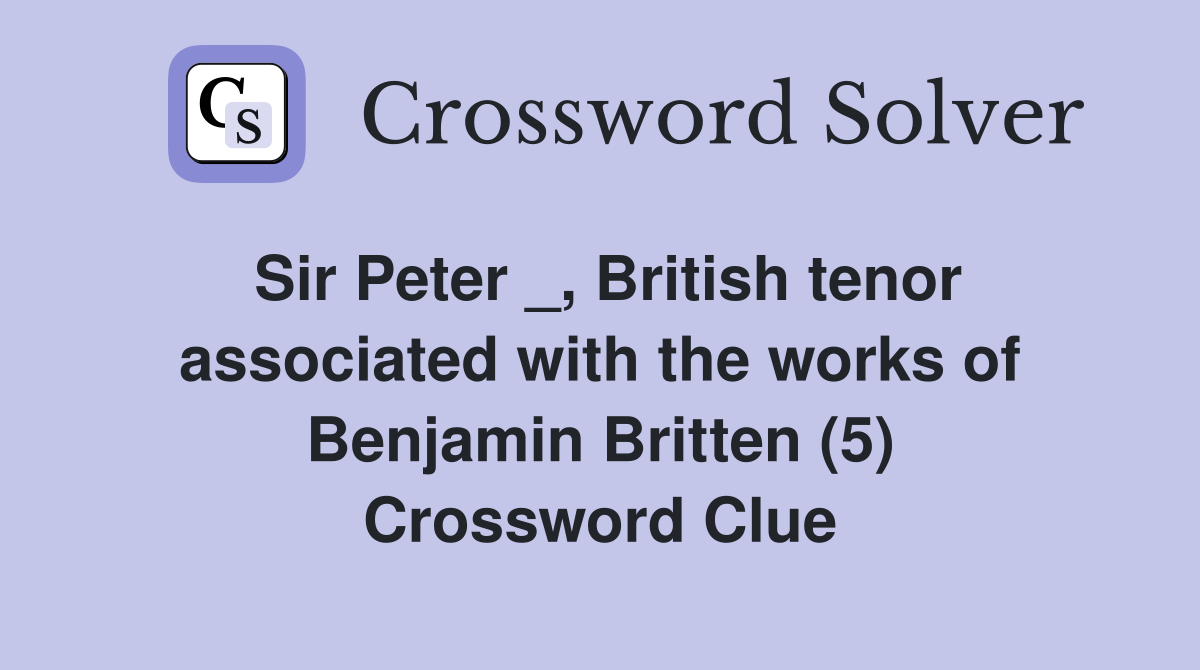 Sir Peter British tenor associated with the works of Benjamin