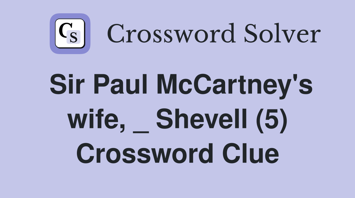 Sir Paul McCartney s wife Shevell (5) Crossword Clue Answers