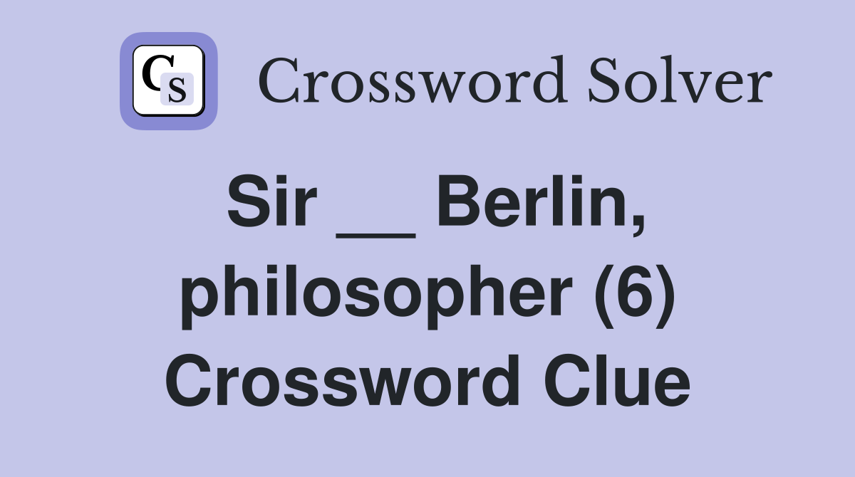 Sir Berlin philosopher (6) Crossword Clue Answers Crossword Solver