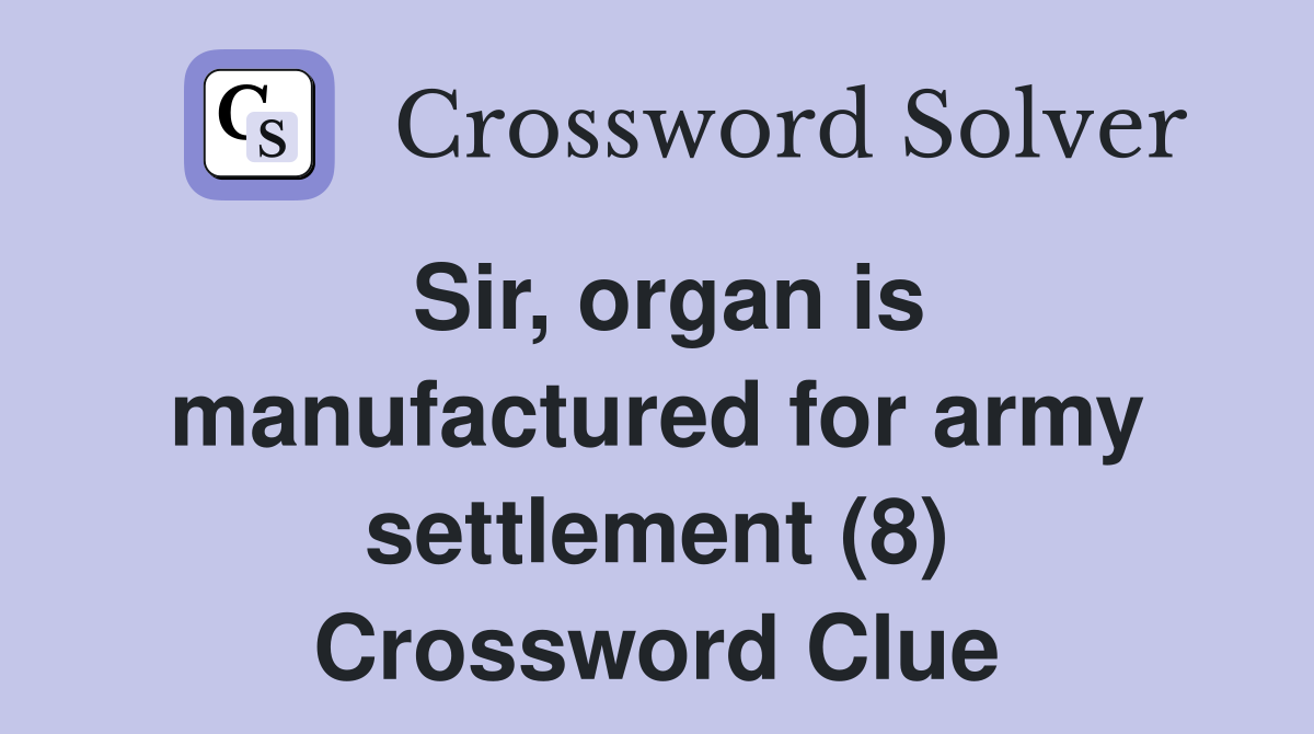 Sir organ is manufactured for army settlement (8) Crossword Clue
