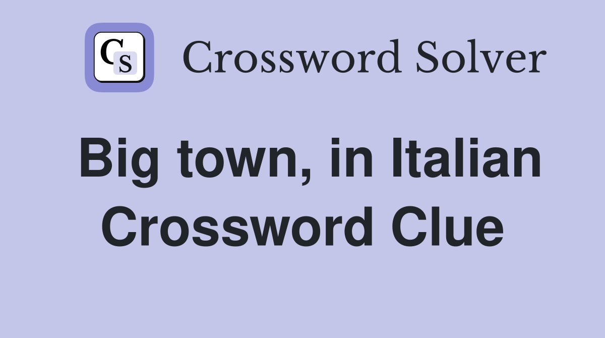 Big town in Italian Crossword Clue Answers Crossword Solver