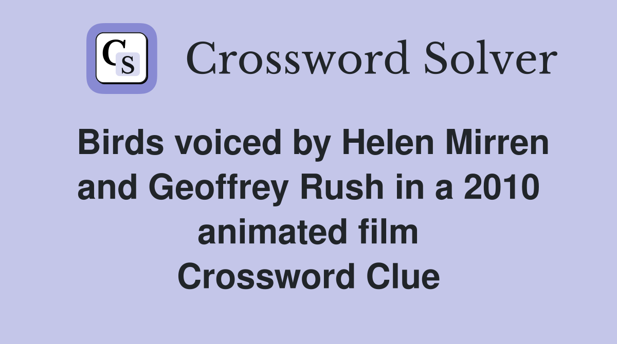 Birds voiced by Helen Mirren and Geoffrey Rush in a 2010 animated film
