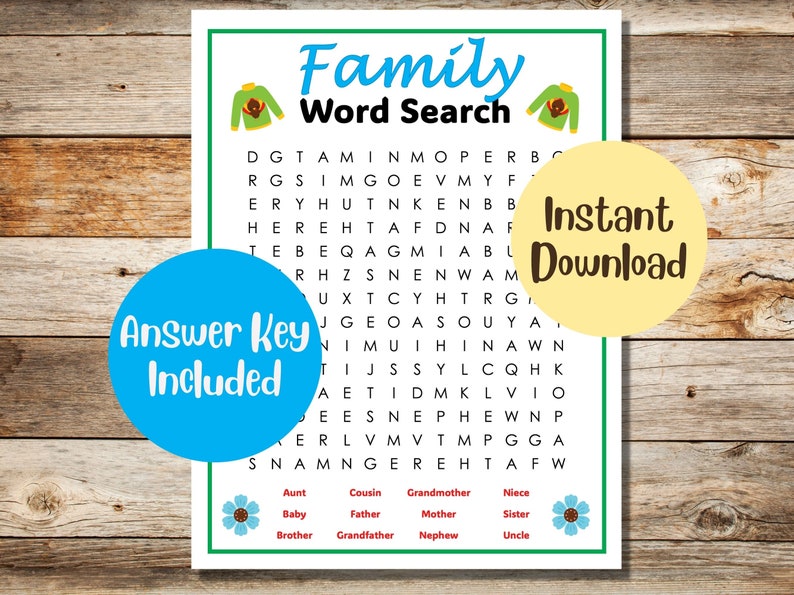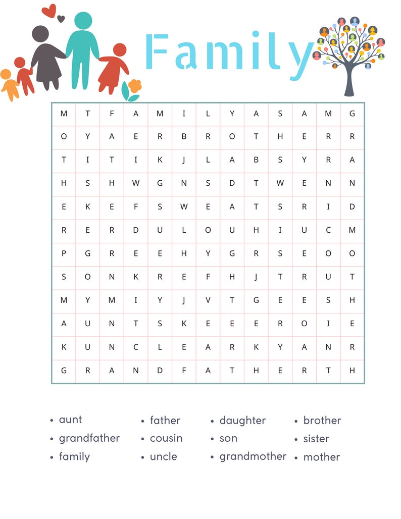 Family Members Word Search Printable Reunion Game (PDF) Etsy
