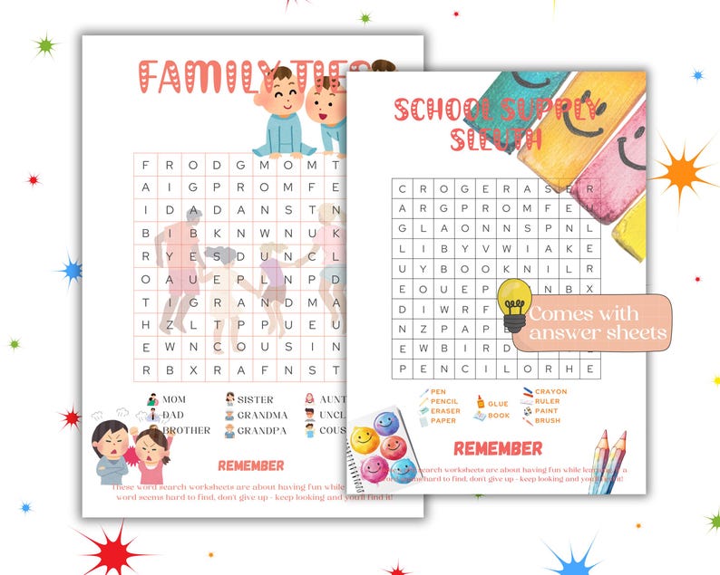 Printable Word Search Puzzle Kids Birthday Party Game Night Instant