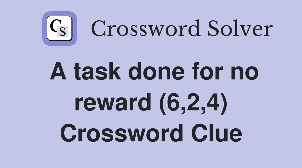 A task done for no reward (6 2 4) Crossword Clue Answers Crossword