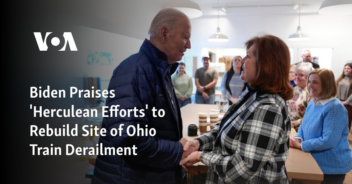 Biden Praises #39 Herculean Efforts #39 to Rebuild Site of Ohio Train Derailment