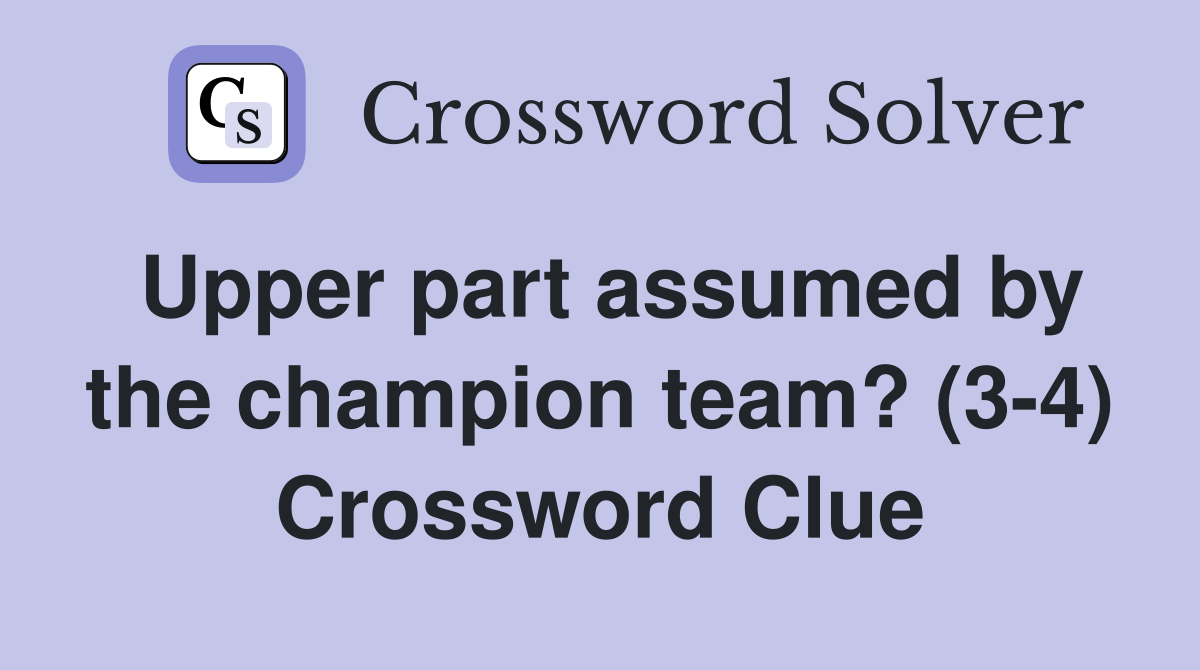 Upper part assumed by the champion team? (3 4) Crossword Clue Answers