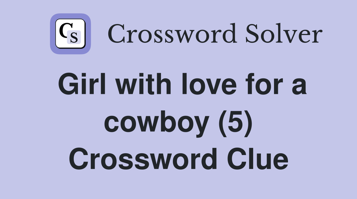 Girl with love for a cowboy (5) Crossword Clue Answers Crossword Solver