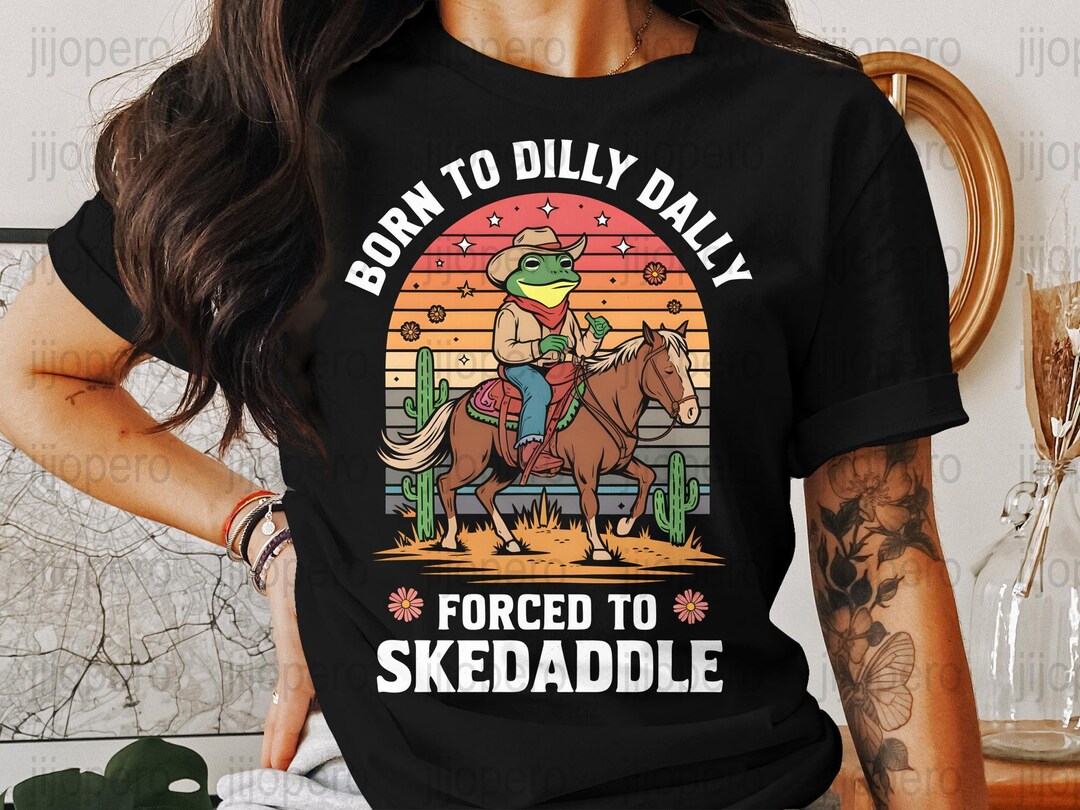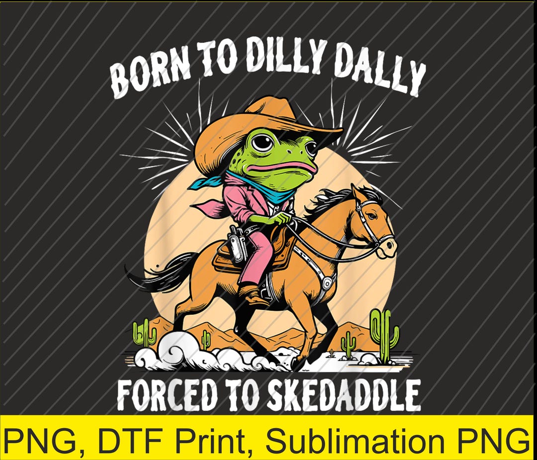 Born to Dilly Dally Forced to Skedaddle Vintage Frog Cowboy PNG