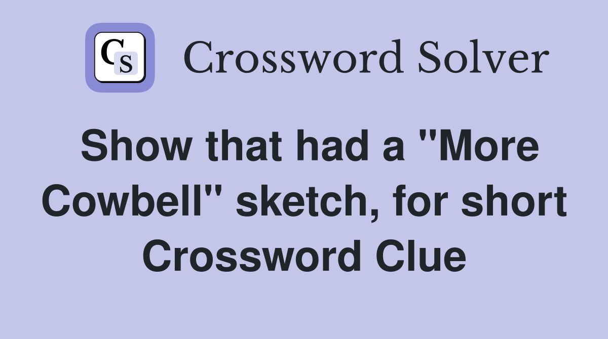 Show that had a quot More Cowbell quot sketch for short Crossword Clue
