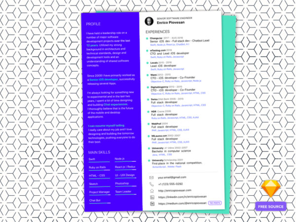 Free Sketch Resume Template by Julian Ma on Dribbble
