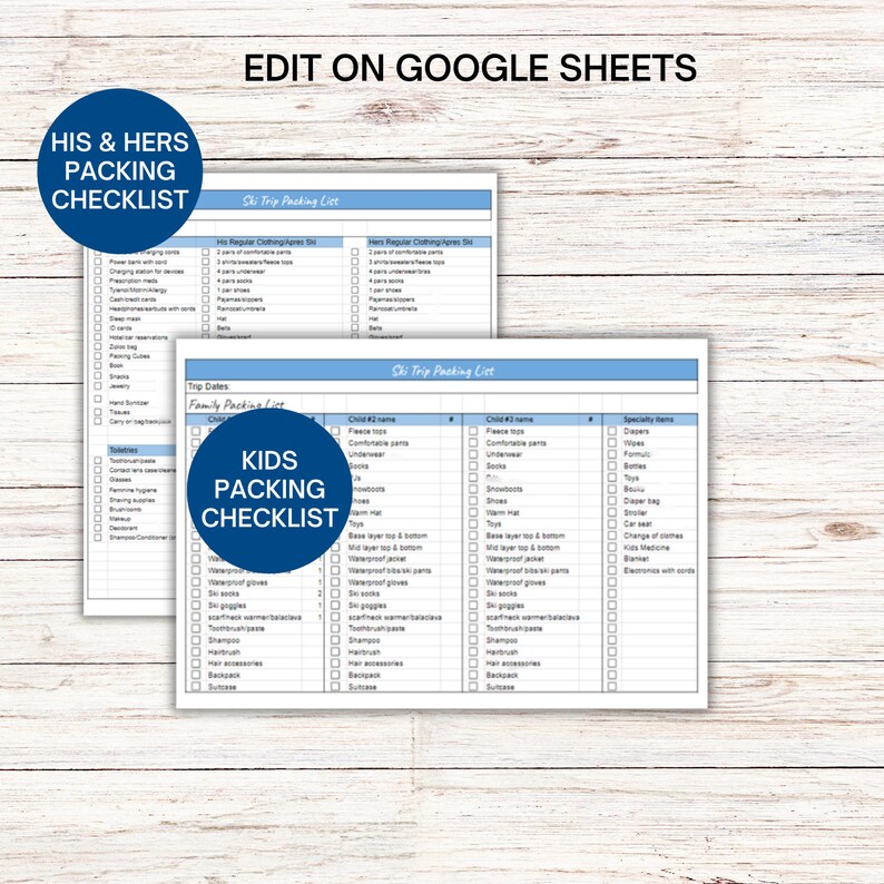Family Ski Trip Packing List Google Sheets Editable Packing