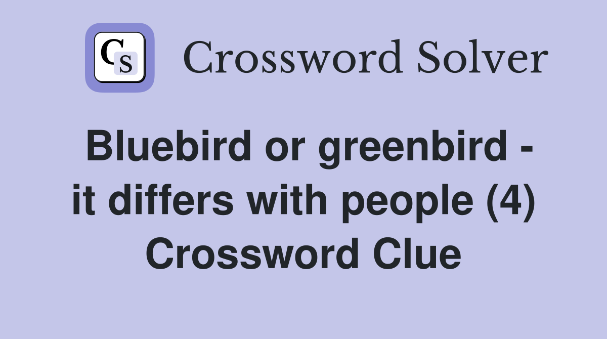 Bluebird or greenbird it differs with people (4) Crossword Clue