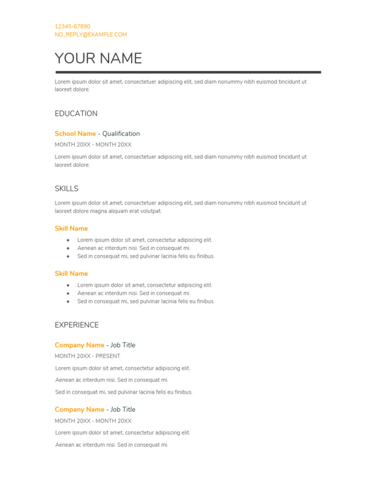 Resume Template with Skills PDF