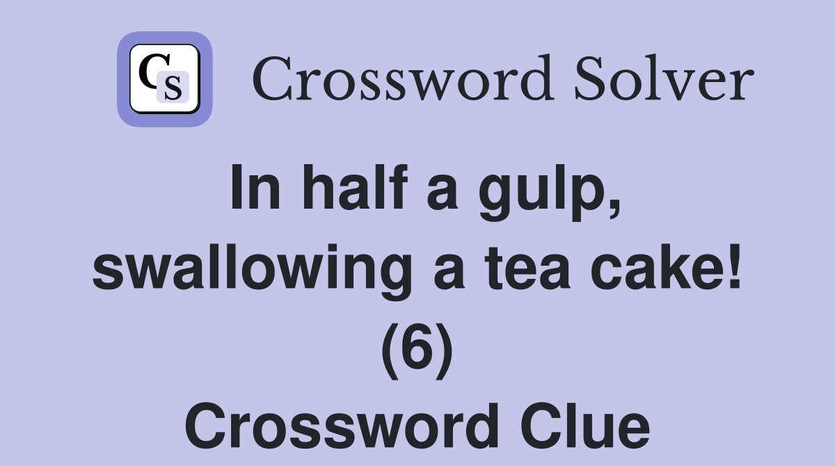 In half a gulp swallowing a tea cake (6) Crossword Clue Answers