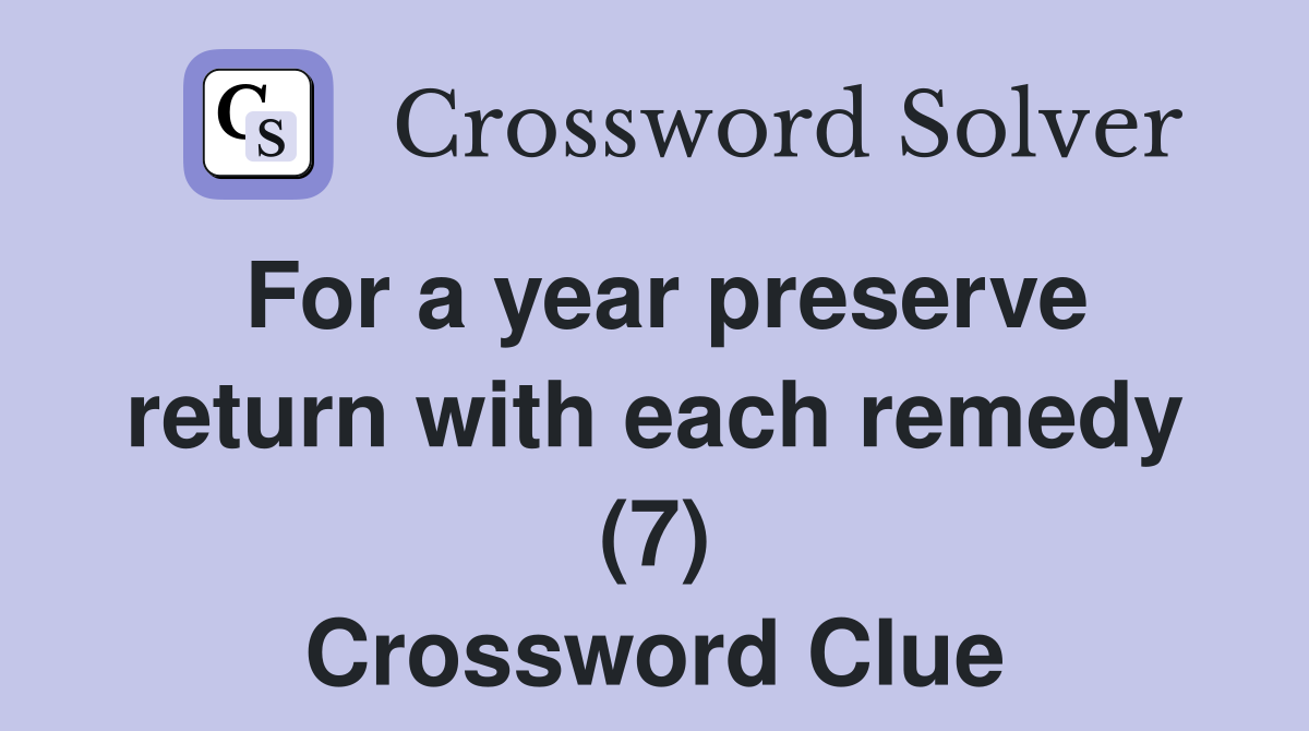For a year preserve return with each remedy (7) Crossword Clue
