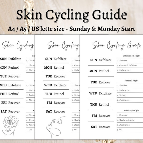 Skin Cycling Routine Printable Template Skin Cycling Guide Cheat Sheet