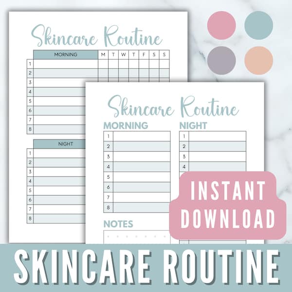 Skincare Routine Tracker: Printable Daily Weekly Tracking Template in