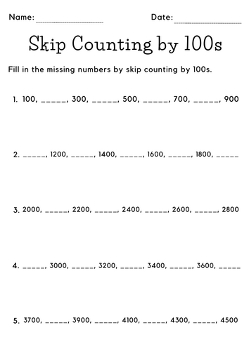 Printable skip counting by 100 worksheets for grade 1 2 3 Teaching