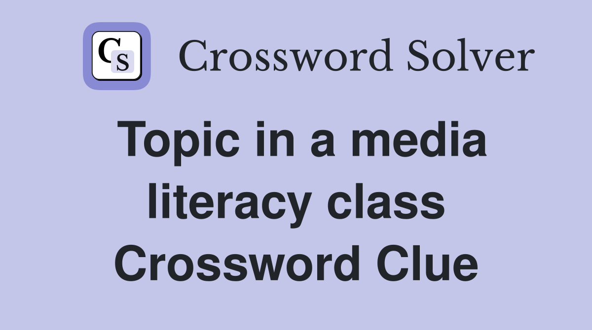 Topic in a media literacy class Crossword Clue Answers Crossword Solver